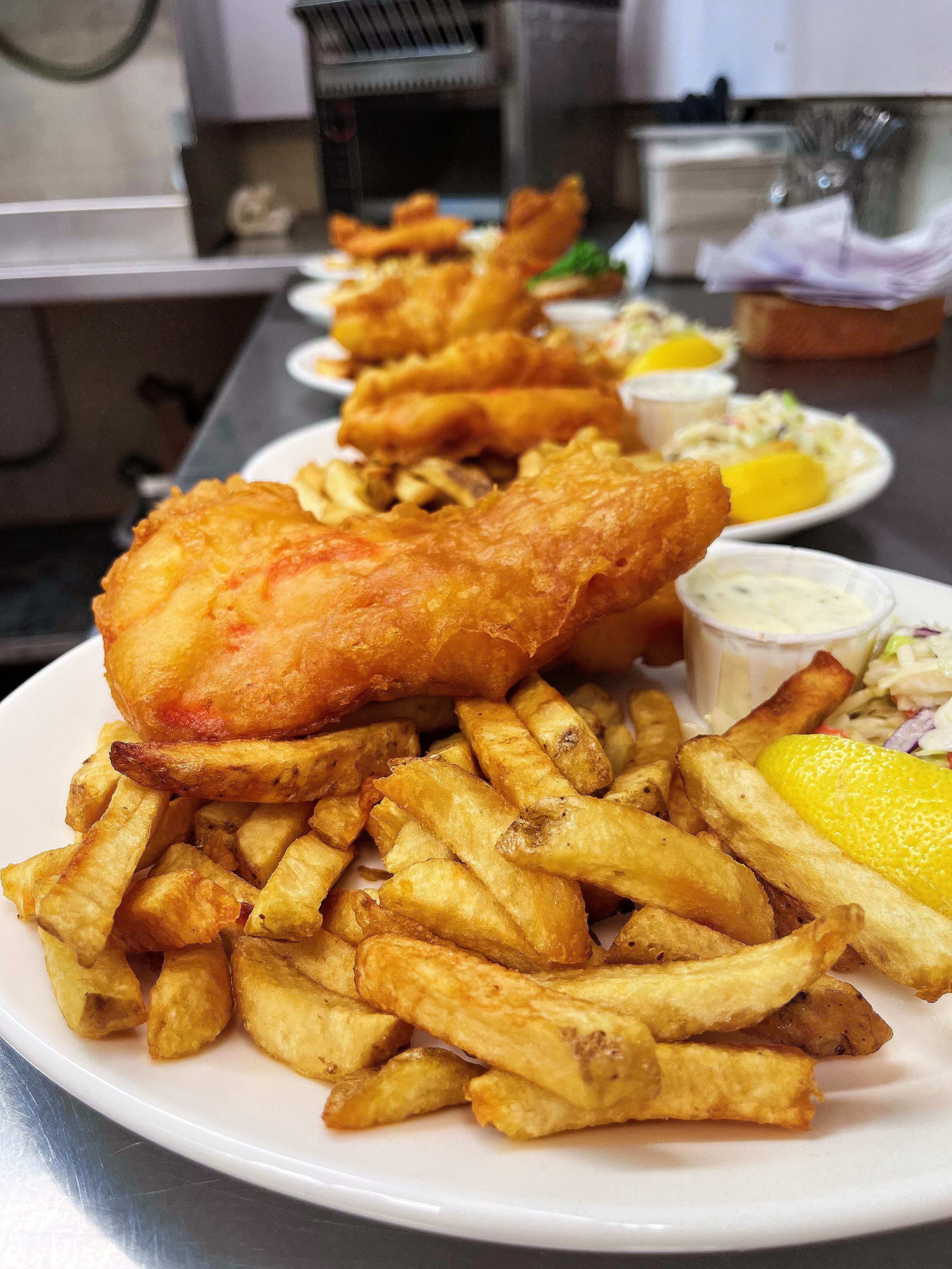 Our restaurant offers a warm, relaxed dining experience with the comforting aroma of freshly fried fish and chips served in a classic setting.